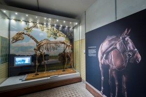 Hyperion in The Maktoum Gallery of the Thoroughbred- visitors can explore anatomy through a digital interactive and low-tech tactile interactive using the skeleton specimen as a real life reference. (© National Heritage Centre for Horseracing and Sporting Art and Animal Health Trust).