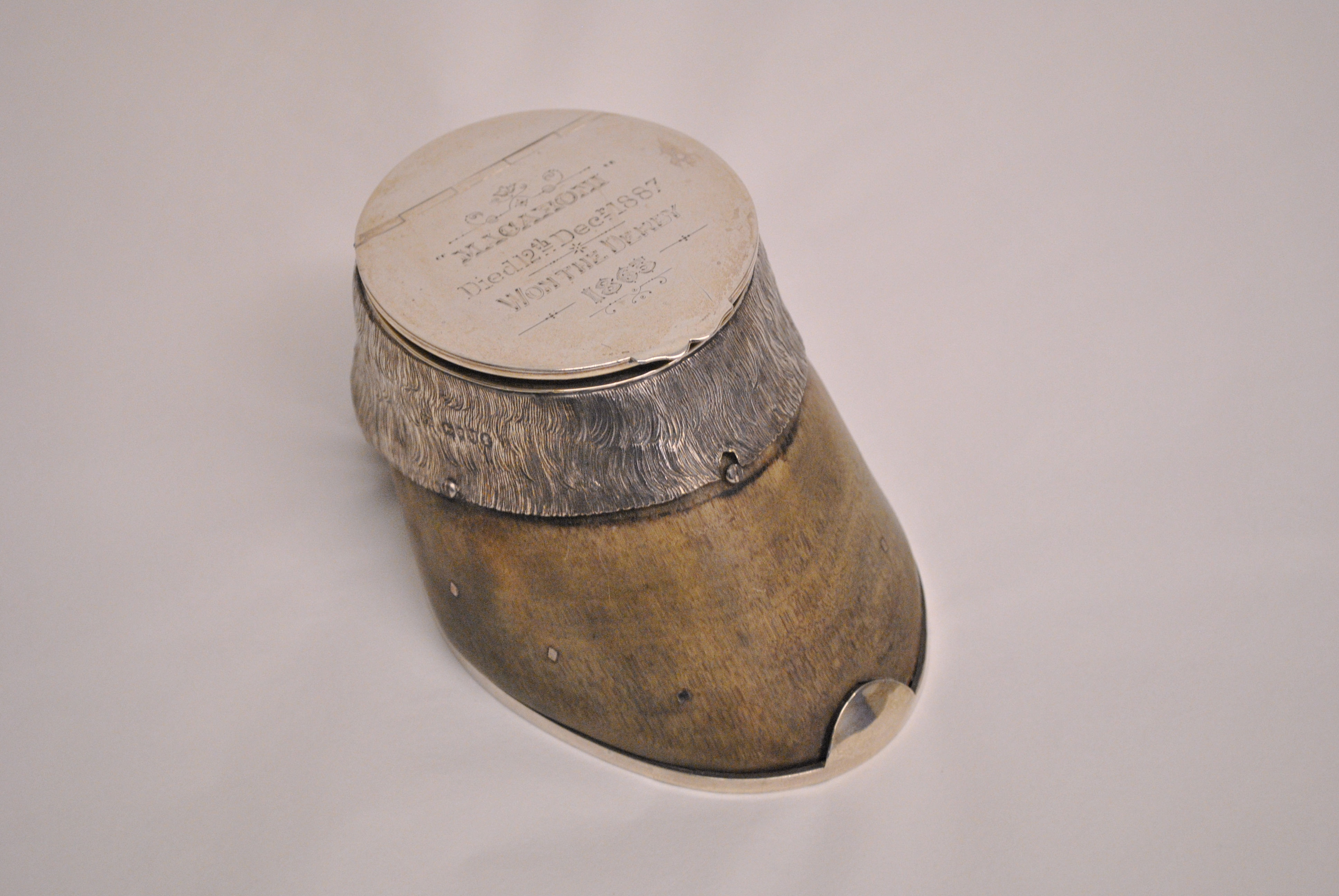 This hoof belonged to racehorse Macaroni, who won the Derby in 1865. It died 12th December 1887. (© National Heritage Centre for Horseracing and Sporting Art).