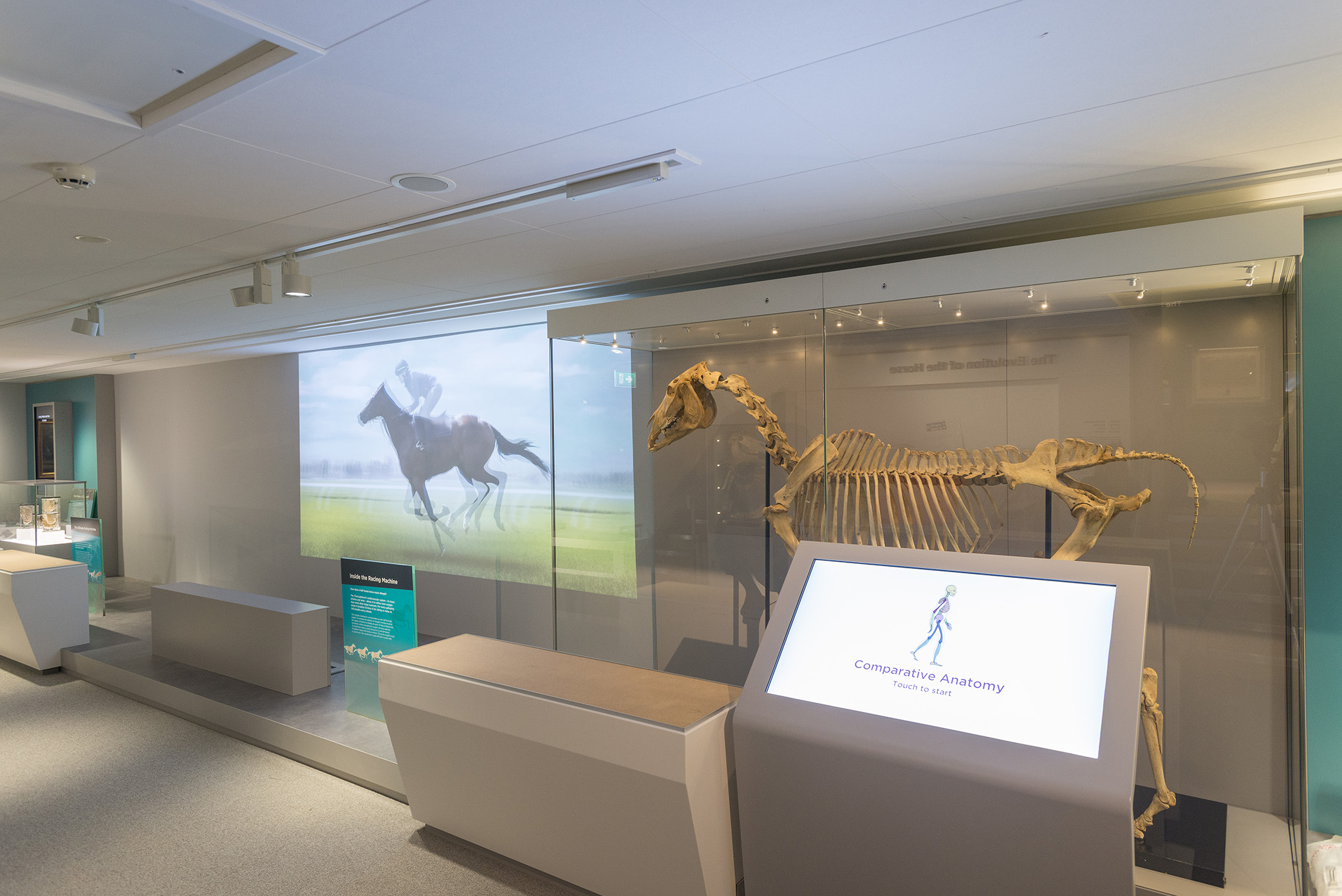 Hyperion in The Maktoum Gallery of the Thoroughbred- visitors can explore anatomy through a digital interactive and low-tech tactile interactive using the skeleton specimen as a real life reference. (© National Heritage Centre for Horseracing and Sporting Art and Animal Health Trust).