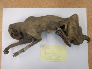 A mummified cat left on my desk one morning. (Photo by author)