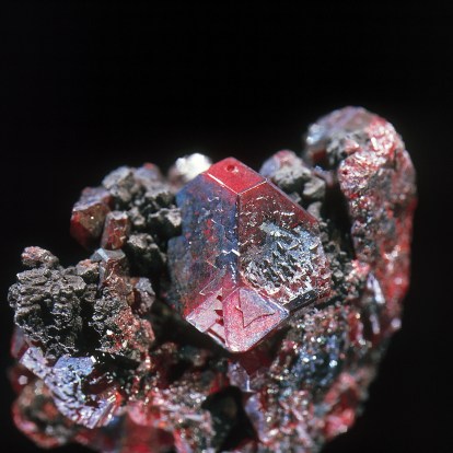 The beautiful mineral Cuprite, from Phoenix Mine, Cornwall. (© Plymouth Museums, Galleries, Archives).