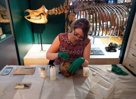 Engaging with public with taxidermy conservation for “Fluff it up”. © The Grant Museum of Zoology, University College London.