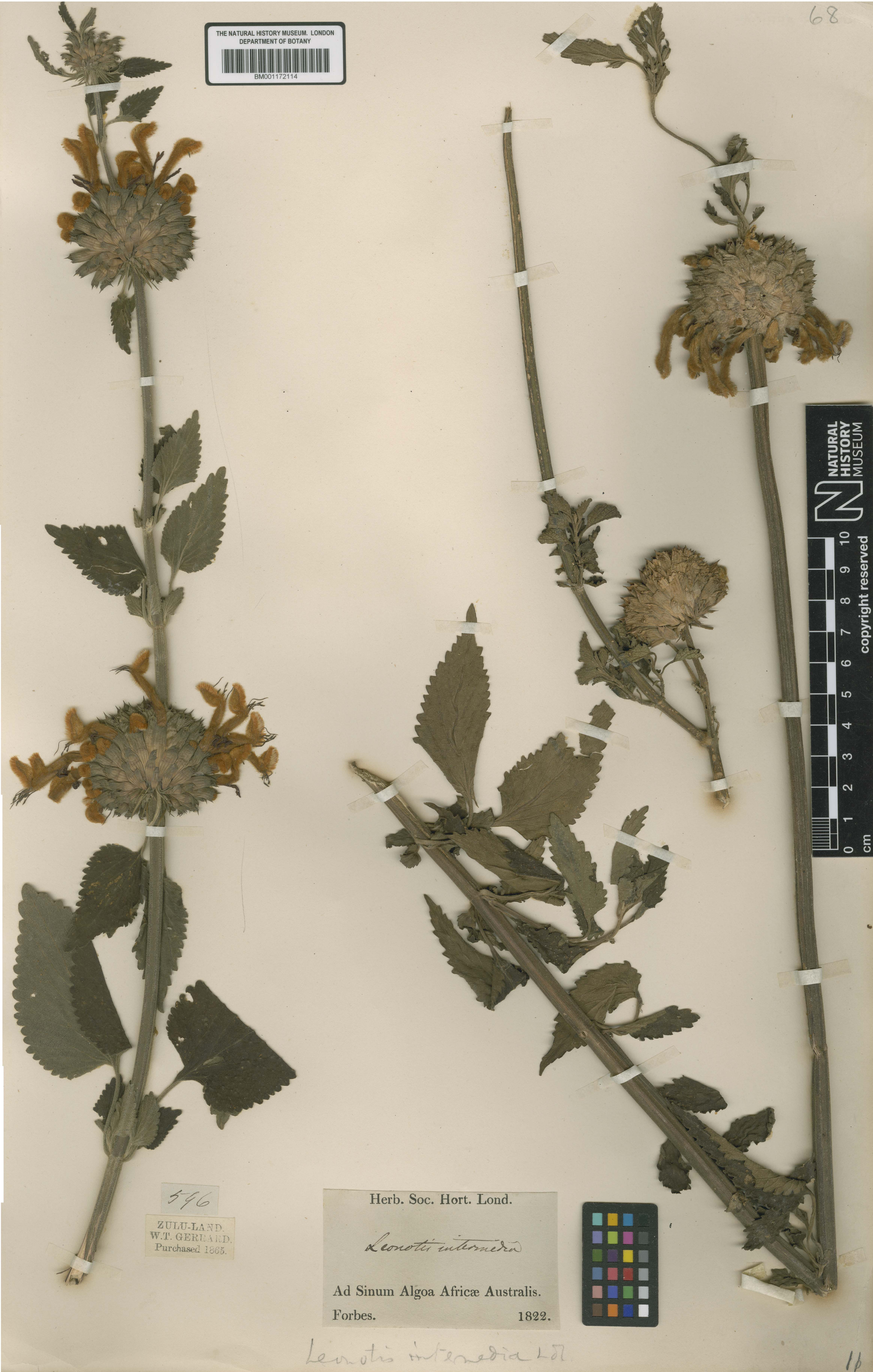 Fig. 1. Specimen of Leonotis intermedia housed in the Natural History Museum, London [Forbes no. 62, Algoa Bay 1822]. © The Trustees of The Natural History Museum, London
