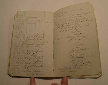 As a priority he was tasked with sending home live plants and seeds along with dried herbarium specimens to aid the process of identifying and naming the new plants. The ‘RHS’ stipulated in his instructions that he should also keep a journal during his travels. This was later used by Capt. Owen and informed his well-received adventurous tale of the voyage (W. F. W. Owen (1833): Narrative of Voyages to Explore the Shores of Africa, Arabia and …, Volume 1). Forbes was very conscientious and even kept collecting books, numbering his specimens at each location, adding dates, habitat and habit details (including symbols and unfamiliar words). With each record he included a note about the soil that each of the plants grew in to ensure that they would have similar growing media back in the RHS’s Chiswick garden. Forbes’s journals, note books, lists and letters are all to be found in the RHS’s Lindley Library.