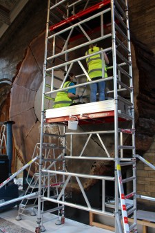 Figure 3. Conservators working on mobile scaffolding to access the specimen. Health and safety was a priority and risk assessments were written for all processes.