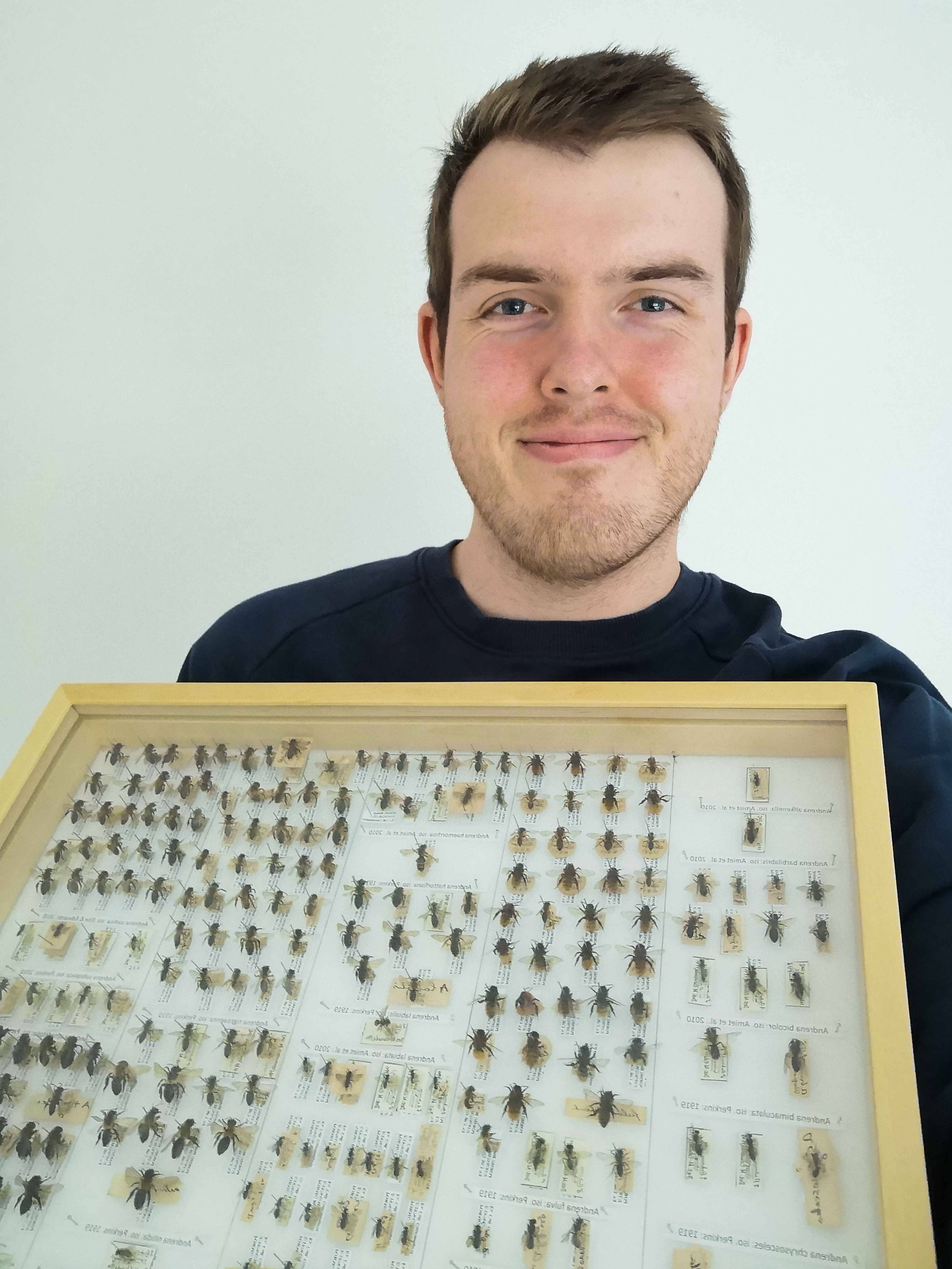 One area of the collection that has benefited from lockdown has been the Hymenoptera collection. A previous project to bring the collection together into one place and a newly appointed Natural History Collections Assistant who is a keen entomologist made this a logical choice to work on. Brad, who was one month into a six-month position with the Wild about Portsmouth project, took home several drawers to focus on cataloguing and identifying Hymenoptera collected by H.L.F. Guermonprez about 120 years ago. Guermonprez was an avid collector of natural history, primarily in Bognor and surrounding areas in West Sussex and Surrey. He collected c.1500 aculeate hymenopteran specimens, c.1000 of which are bees. The lockdown has meant that a large proportion of our time can be spent on tasks like cataloguing specimens and has allowed us to catalogue just over half of the Hymenoptera collection so far – it will be the first fully completed insect collection when finished.