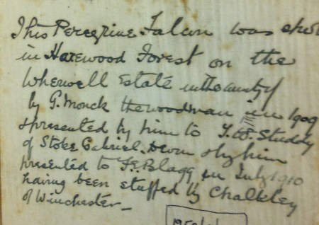 - F. E. Blagg collection – c.100 bird specimens, mostly collected in Hampshire and Norfolk between c.1905 – 1915. There are two taxidermists associated with this collection – H.N. Pashley of Cley, Norfolk and William Chalkley of Winchester, Hampshire.