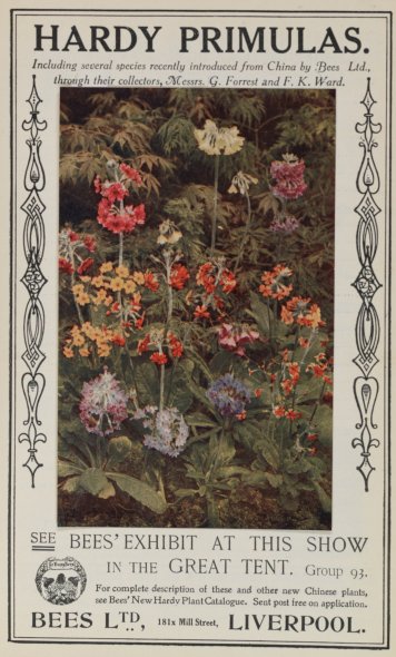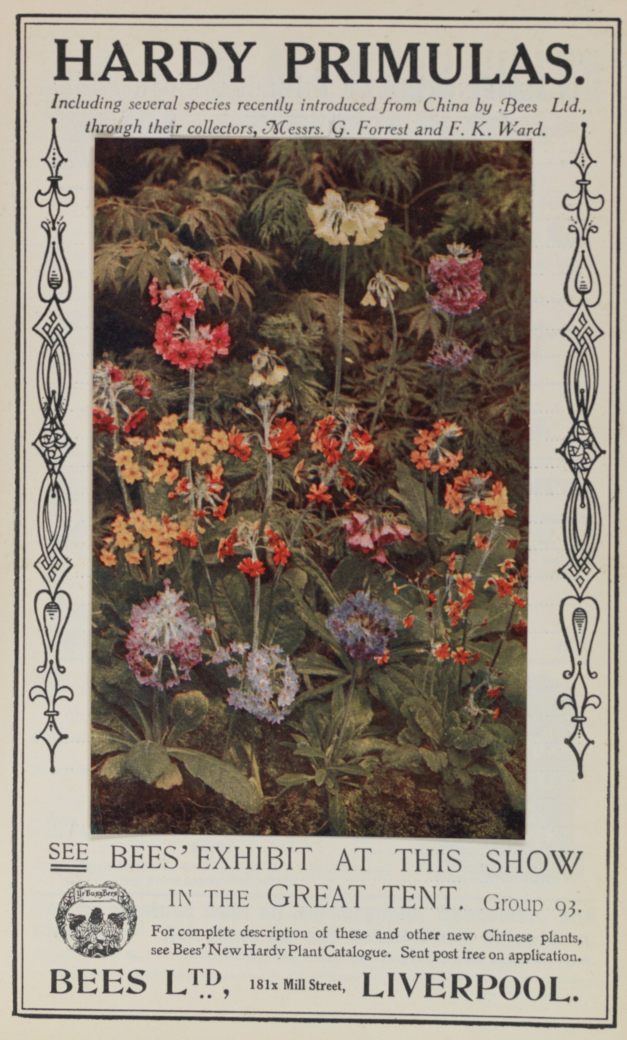 Bee’s Ltd advertisement within the 1914 RHS Chelsea Flower Show catalogue. Note the reference to Forrest’s collections © RHS Lindley Library