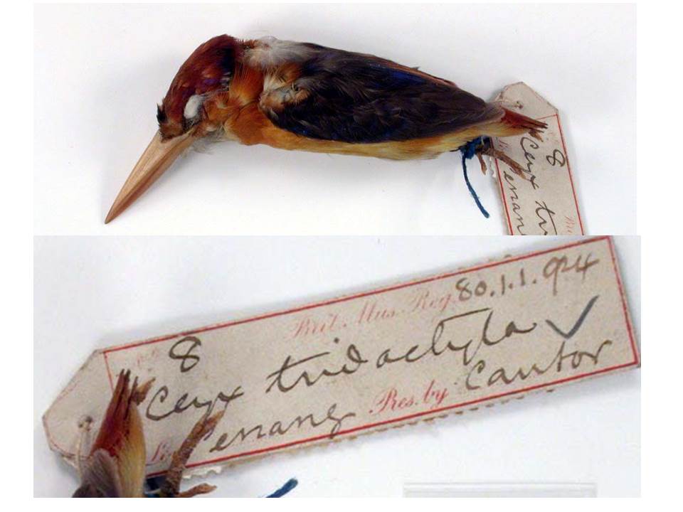 Some of the largest collections of birds donated to the India Museum were amassed by Theodore Cantor and Brian Houghton Hodgson. Cantor was a Danish physician employed by the East India Company. Manchester Museum has a small number of Cantor’s birds from Penang and Malacca, Malaysia.