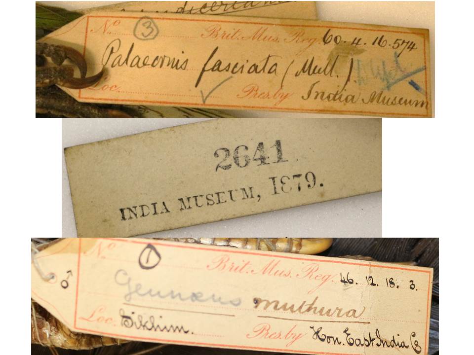 It has been possible to identify more of the India Museum birds in the Manchester Museum collections by studying the specimen labels; many still have the old British Museum registration numbers. More provenance information has been determined by searching for the registration numbers in the BMNH catalogue.