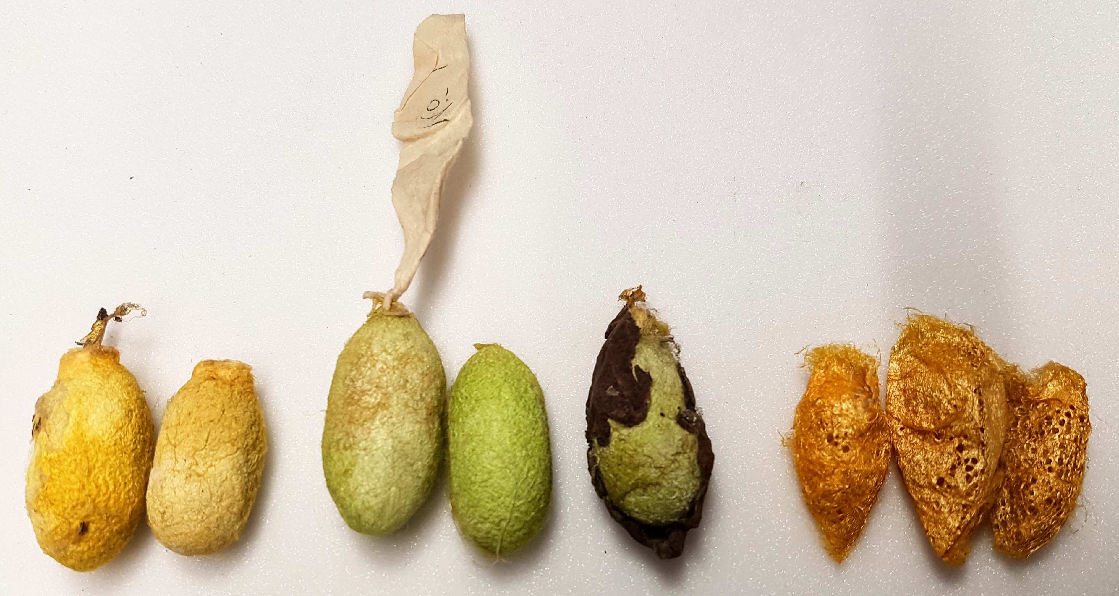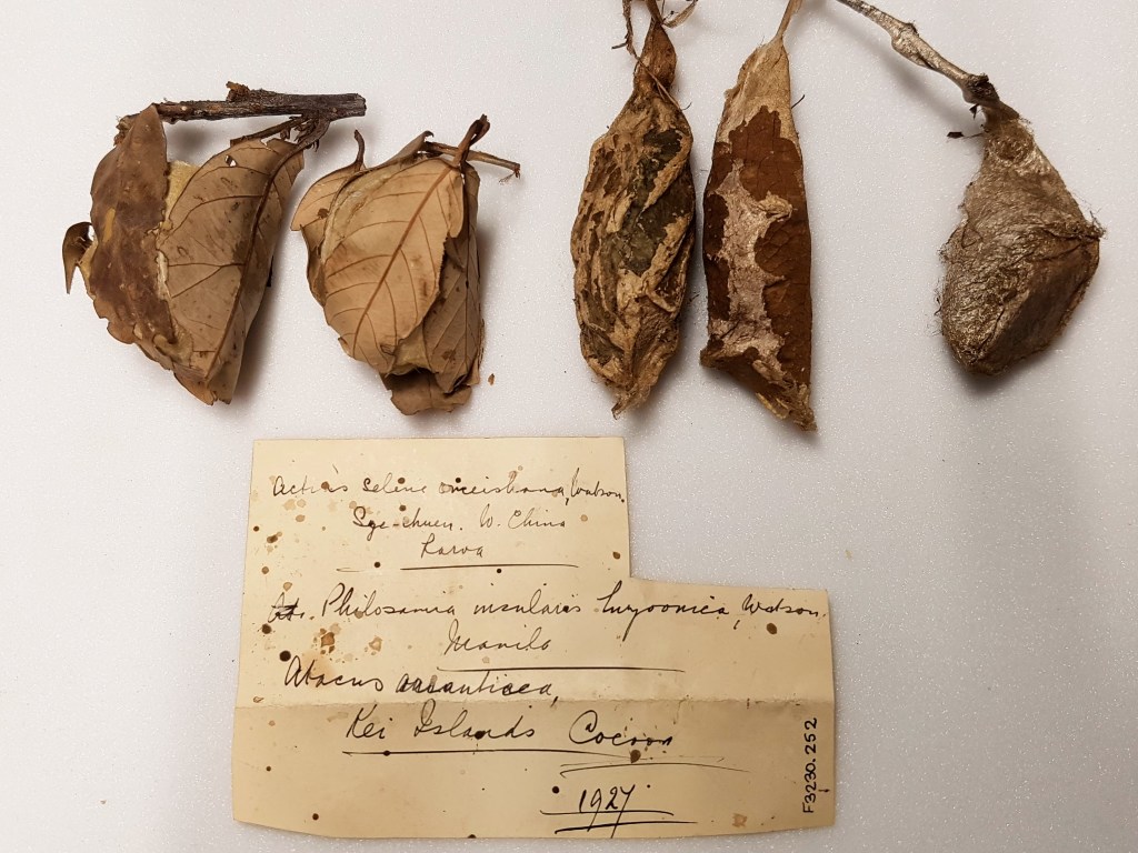 The silk and cocoon collection also includes certain ‘miscellanea’, such as examples of spider silk, artificial silk, some pupae and cocoons which most likely do not belong to Bombycoidea, and a few previously undetermined pupae of the harvester butterfly (Feniseca tarquinius).