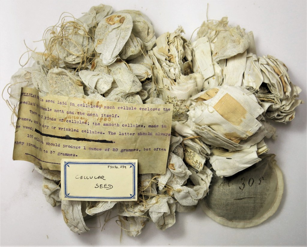 After the initial analysis it can be said that the silk and cocoon collection housed at the Manchester Museum represents 2 families (Bombycidae and Saturniidae), 12 genera (Bombyx, Archaeoattacus, Attacus, Callosamia, Hyalophora, Rothschildia, Samia, Actias, Antheraea, Cricula, Loepa and Saturnia) and 30 species of silk moths. There are 5,315 specimens or objects listed under 270 accessions, which span 5 continents (Europe, Asia, North America, Africa, and Australia), 17 countries (England, Italy, France, Cyprus, Turkey, India, Sri Lanka, China, Japan, Indonesia, Myanmar, Thailand, The Philippines, USA, Nigeria, Madagascar, and Australia) and 2 British Overseas Territories (Saint Helena and Bermuda). The collection consists of 4,998 cocoons (around 15 of them are communal, with unknown number of individual cocoons inside), 195 examples of raw silk (reeled, carded, spun etc.), 11 examples of woven silk fabric, and 100 examples of so called ‘cellular seed’ (silk moth eggs laid on small pieces of fabric).