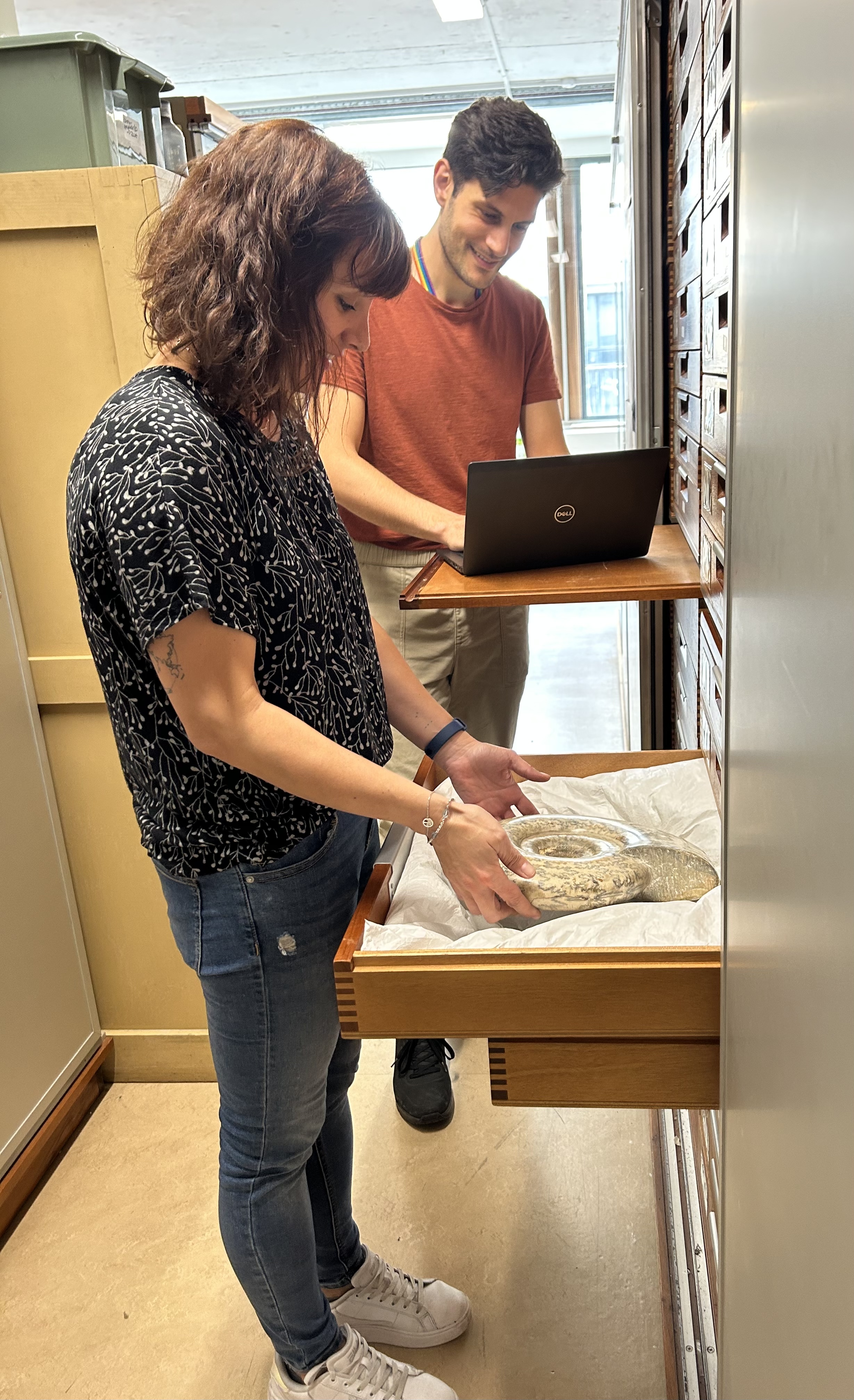 Since February 2023, the Moves Team have been progressing through the collections, visually assessing specimen condition and housing. Over 40,000 ‘locations’ – which can be anything from a drawer or a shelf containing specimens – across the Palaeontology Collections have been assessed to date. This is not a small task, with some drawers alone containing hundreds of specimens. During the process we have carried out assessments in several sections including Micropalaeontology, Fossil Molluscs and Fossil Mammals – from mammoths to ammonites, the team has seen it all!
