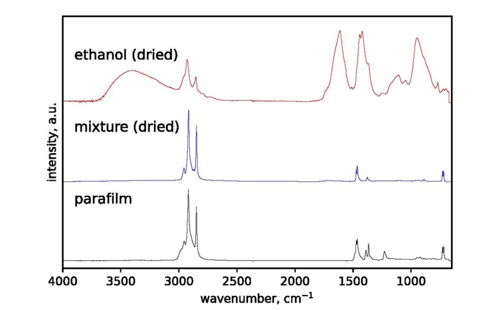 Example of FTIR spectral analysis: a) the residue from the ethanol-parafilm sample shows doublets from Parafilm at ~1460 and 725 cm−1 ©The Trustees of the Natural History Museum