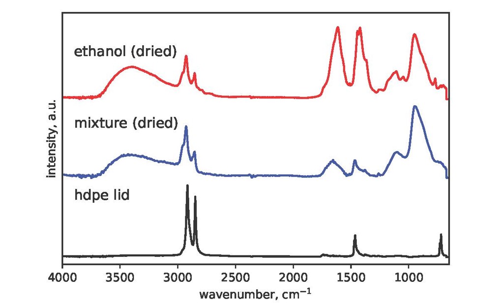 Example of FTIR spectral analysis: the residue from the ethanol-lid sample is dominated by the ethanol signal. ©The Trustees of the Natural History Museum