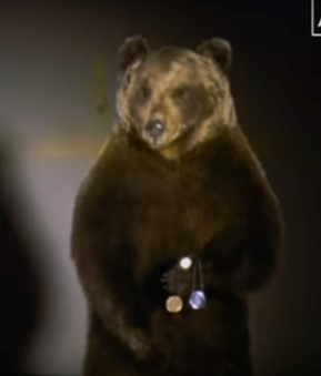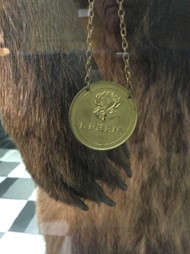 In a contemporary film made of the opening ceremony for the German television news[2], the brown bear is featured with 3 medals dangling from its paw, only one of which is now features in the display. This medal bears a swastika and the inscription ‘1 PREIS’. Another medal bearing an antler motif is displayed on the floor of the case, by the bear’s feet.