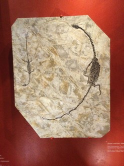 Most of the other fossil displays in the Paleontological collection were labelled more conventionally, such as the “slab with skeletons of the marine sauropterygian reptiles from the Middle Triassic of Monte San Georgio, Canton Ticino”. You can’t go far wrong if you stick to the facts. All the more surprising, therefore that the fossil remains of a bird should be labelled ‘Fly Little Bird’ and a fossil dragonfly labelled ‘Winged Eternity’. A large ammonite cut cleanly into two halves and displayed with the inside face of each visible to the visitor is labelled ‘Divorced’, a title that recalled Hirst’s title of ‘Mother and child separated’ that he used for the cow and calf specimens that he cut in half.