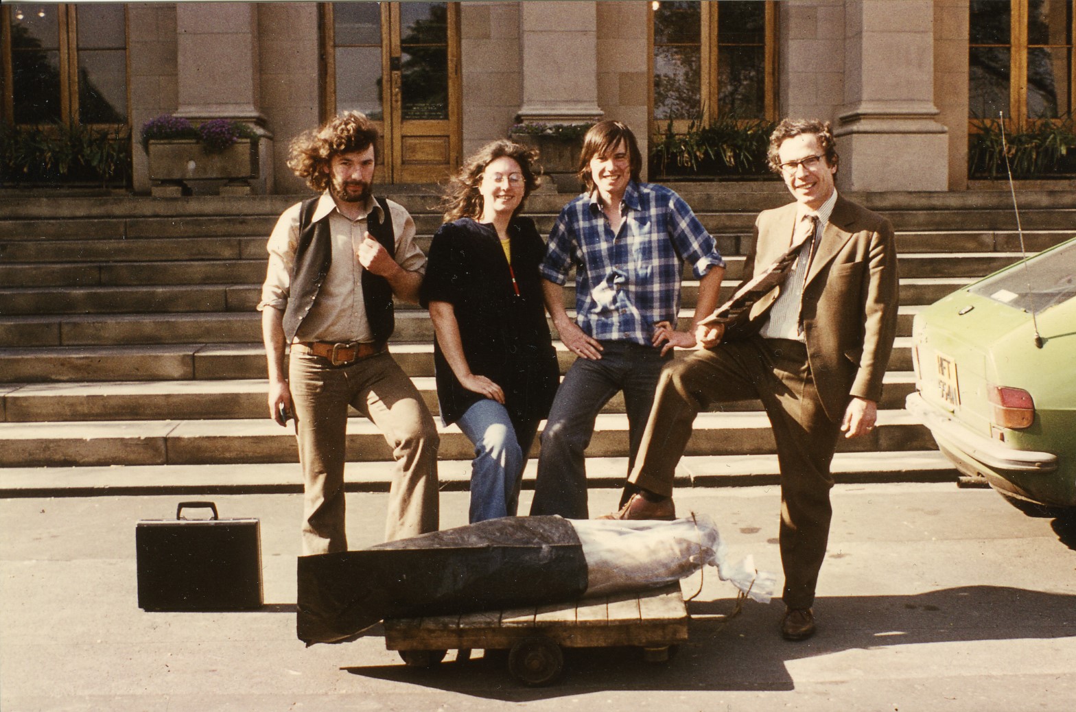 In photos from the time, excited museum staff in awesome 70s fashion pose with the beast – here looking shiny black and spiny in its lead coffin.
