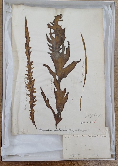 The Bryozoa herbarium is relatively small but very historically significant, it does contain type material such as the type of Alcyonidium diaphanum (Hudson, 1778), but also a trove of curator’s and collector’s handwriting and notes spanning over centuries in some cases. There are some challenges at present, not all the herbarium specimens are housed or preserved as current guidelines recommend (Bromberg, 2020), so many would need some level of conservation. There are loose specimens and labels within some of the specimen folders which of course would need to be reassociated before the move. Once the specimens have been conserved, it would be ideal to digitise them using established methods at the NHM (Lohonya et al., 2022), for digital loan purposes to prevent excessive handling with the very historic material.