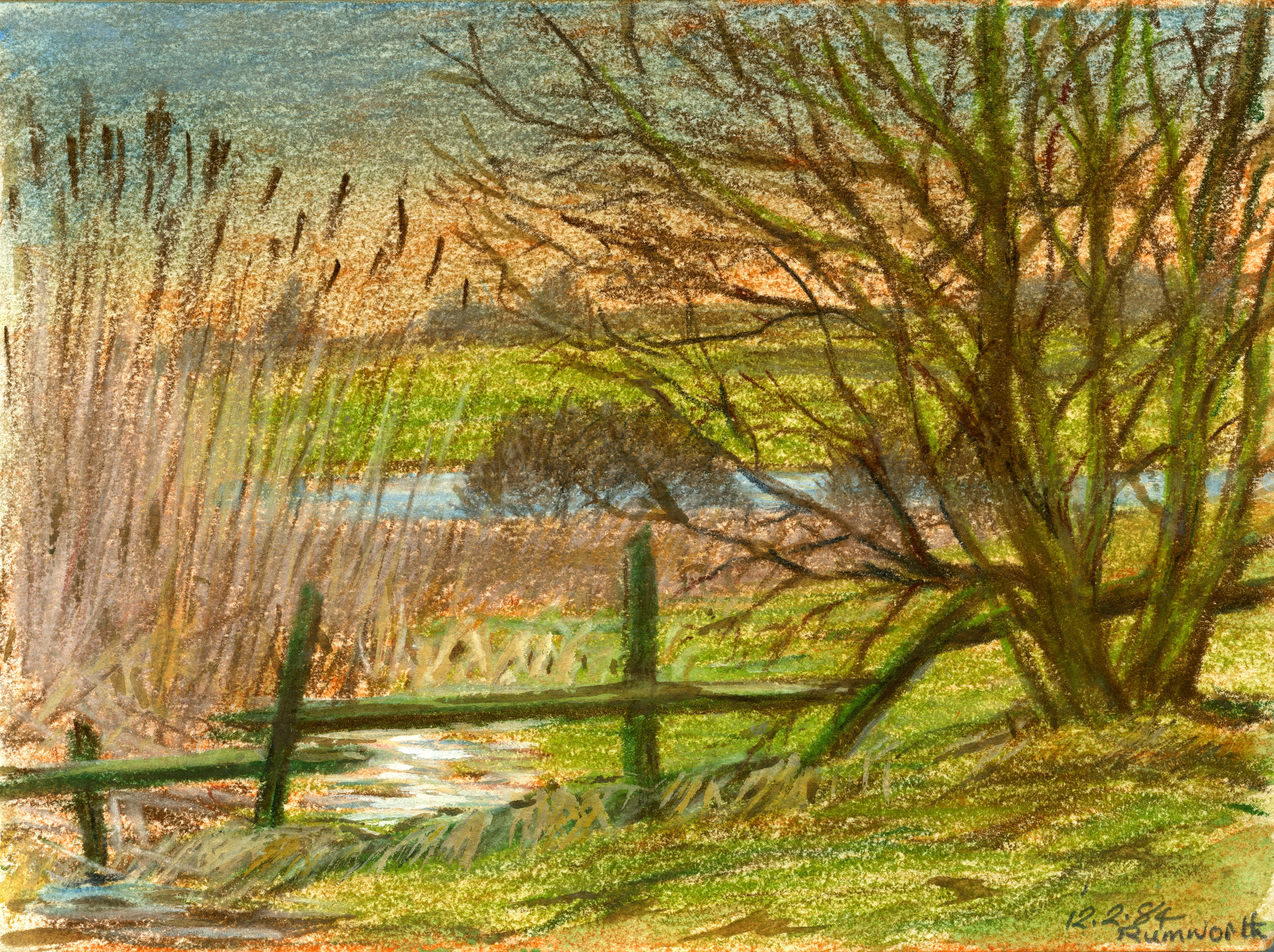Gorton lived in Westhoughton for much of his life, and he often made drawings of birds that visited his garden. He also made regular field trips to the countryside surrounding Bolton, filling hundreds of sketchbooks with brilliantly observed drawings. One of the places he visited most often was Rumworth Lodge, a large shallow reservoir in Bolton. He once said that “one of the best places for bird watching in Bolton is Rumworth Lodge,” and this is clear from the number of sketches he produced at this location. The great variety of breeding and nesting places including trees, water, bushes, and undergrowth, means that it is full of birds all year round and that Rumworth Lodge Reservoir is of great ornithological interest. Both reed and sedge warblers can be seen in summer and other species of bird recorded at the site includes arctic skua, brent goose, great grey shrike, and purple sandpiper. Two islands created by Lancashire Wildlife Trust has allowed both oystercatchers and little ringed plovers to breed, and common terns, tufted ducks, and great crested grebes have successfully bred at the lodge also.