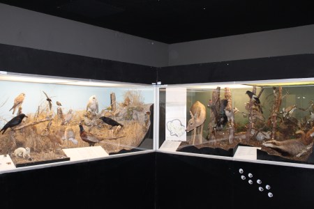The natural history gallery displays specimens from around Angus in their natural habitat of the seashore, mountain or glen. Many of these specimens were ‘shot to order’ in the late 1970s then exhibited with educational interpretation. These panels have remained largely unchanged for nearly 50 years – a time capsule of extinction.