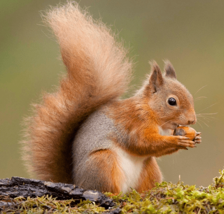 ‘Widespread and common, even visiting town parks and gardens. Native red squirrels are a lot rarer in the UK than their American cousins, grey squirrels.’