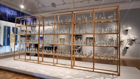 The centre space of the exhibition included contemporary art that explored this connected ocean vision. We displayed Parachute by Cornish artist Nicky Harwood, which encouraged visitors to make connections with displays about pollution and reimagine materials as “precious” rather than “waste”. We refreshed the gallery half way through the run of the exhibition and replaced Parachute with All the Seas by Devon-based artist Tania Kovats. All the Seas is a participatory piece where a network of water gatherers responded to the artist’s call to create a library of water from all the seas across the world. We added in a bottle from Plymouth Sound collected by the Leader of Plymouth City Council. Staff, volunteers and visitors were inspired to talk about the invisible territorial barriers of the ocean.