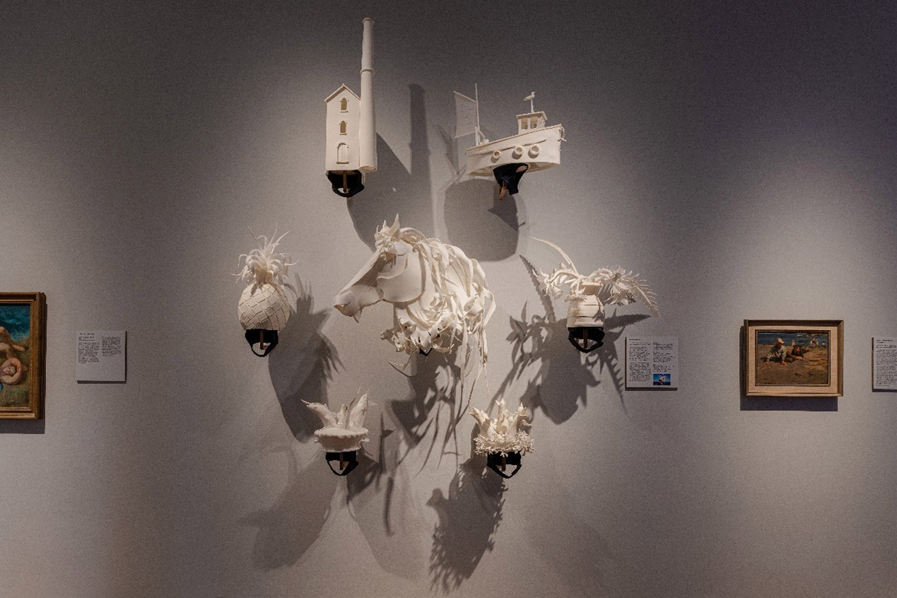 From March 2024 to April 2025, a new exhibition at The Box called Planet Ocean explored Plymouth’s marine heritage and contemporary identity as “Britain’s Ocean City”. Specimens from our natural history collections, including spirit-preserved marine invertebrates, molluscs, corals, mounted sea birds and seaweed folios were displayed alongside art, world cultures collections, image and film and loan material from local partners.