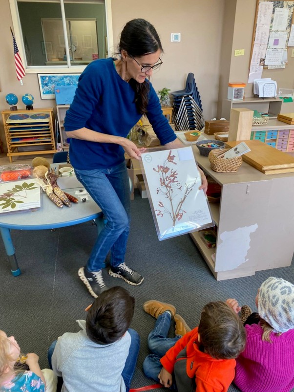 At Laprintanière Montessori Preschool in Baton Rouge, Louisiana, pre-schoolers got the privilege of learning about seed dispersal directly from the herbarium staff of the local university. Christina Doyle, one of the Research Associates in the herbarium at LSU, uses wrapped 2D specimens, as well as material from the seed collection, to tell stories about wind, water, animals and fire.
