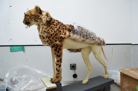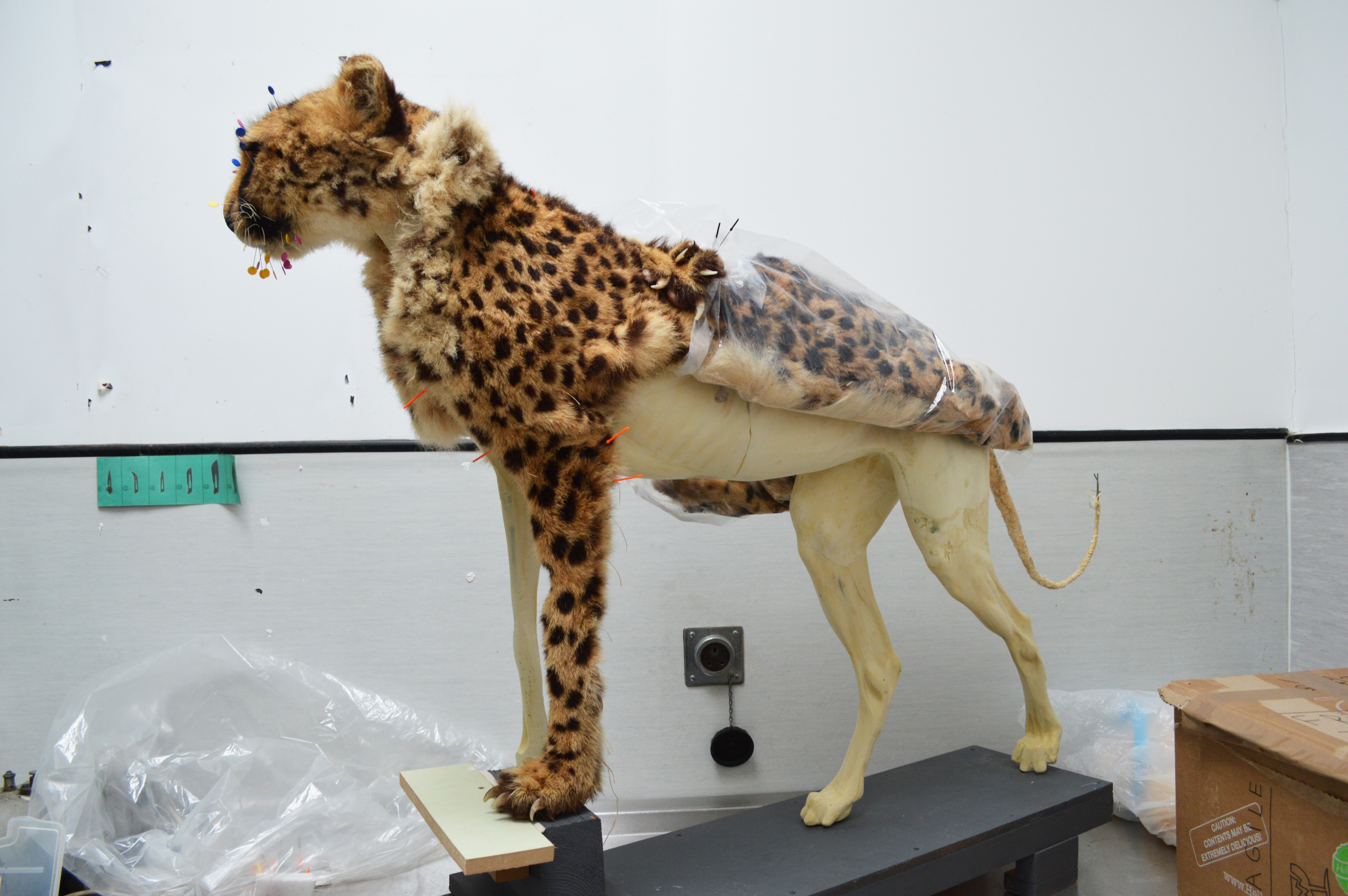 Cheetah in progress at The Booth Museum of Natural History using a polyurethane foam form – Jazmine Miles Long