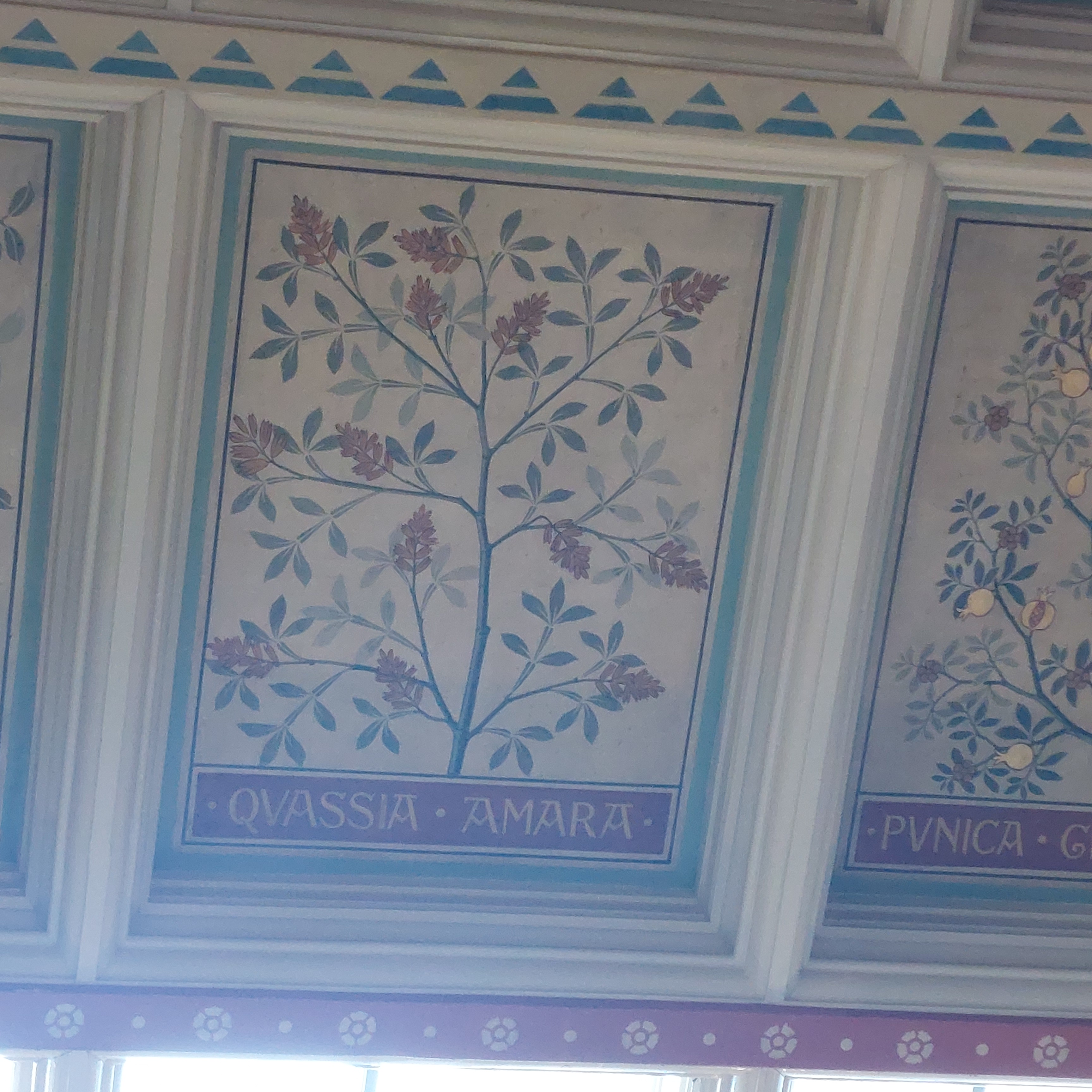 Image 7. Quassia amara ceiling panel among 162 of the Hintze Hall decorated ceiling, Natural History Museum London. (P Rutter, 2025)