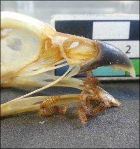 A horde of Anthrenus larvae on a bird skull. (C) UCL Grant Museum