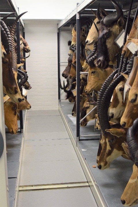Figure 1. A rack of game trophies from the Chapman collection in the Great North Museum resource centre (Copyright Tyne and Wear Archives and Museums.